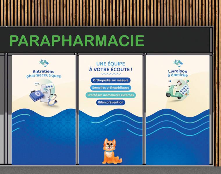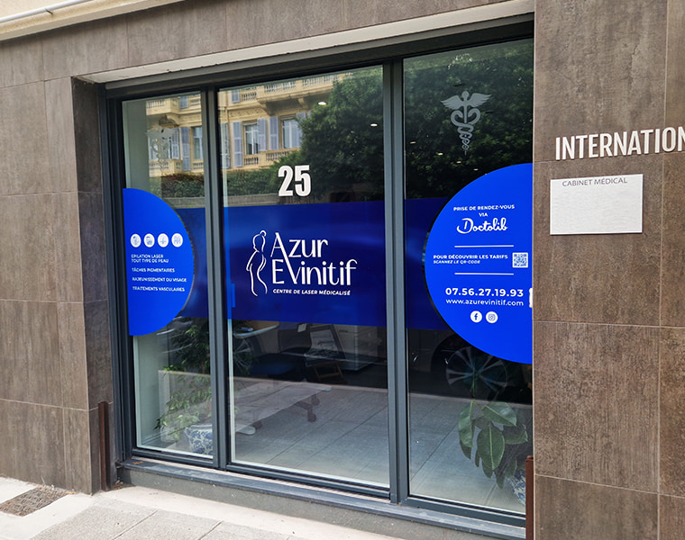 Création de vitrine commerciale et habillage de façade - Roy Design sur la Côte d’Azur